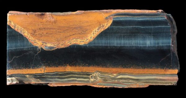 Sapphire and ruby in the volcanic chimney, pneumatolytic vapours can dissolve certain elements out of the rock and replacing them with others, called “metasomatism”, meaning an addition of new elements, minerals formed in this way are Charoite and Rhodonite, Falcon's eye, and Tigers Eye.