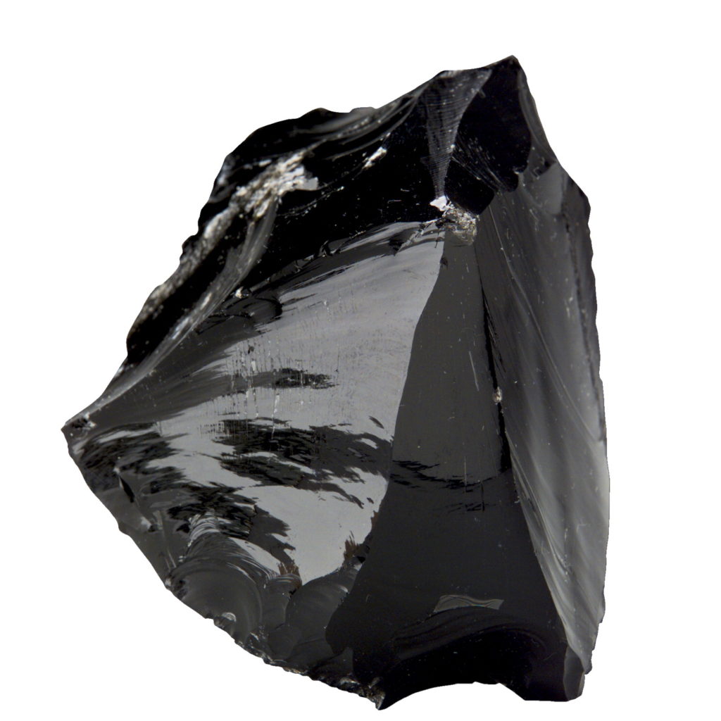 When lava cools extremely quickly, it may even be that no crystals are formed at all. Instead, the entire lava mass is practically “frozen” through the temperature shock, and the molten mass solidifies into a glass-like mass. This is how obsidian originates. Obsidian, being a mixture of many substances, is not strictly speaking counted among minerals but is classified among the rocks; it is also called rock glass or volcanic glass. Because of the varied composition, the appearance of obsidian may vary from black to mahogany to silver.